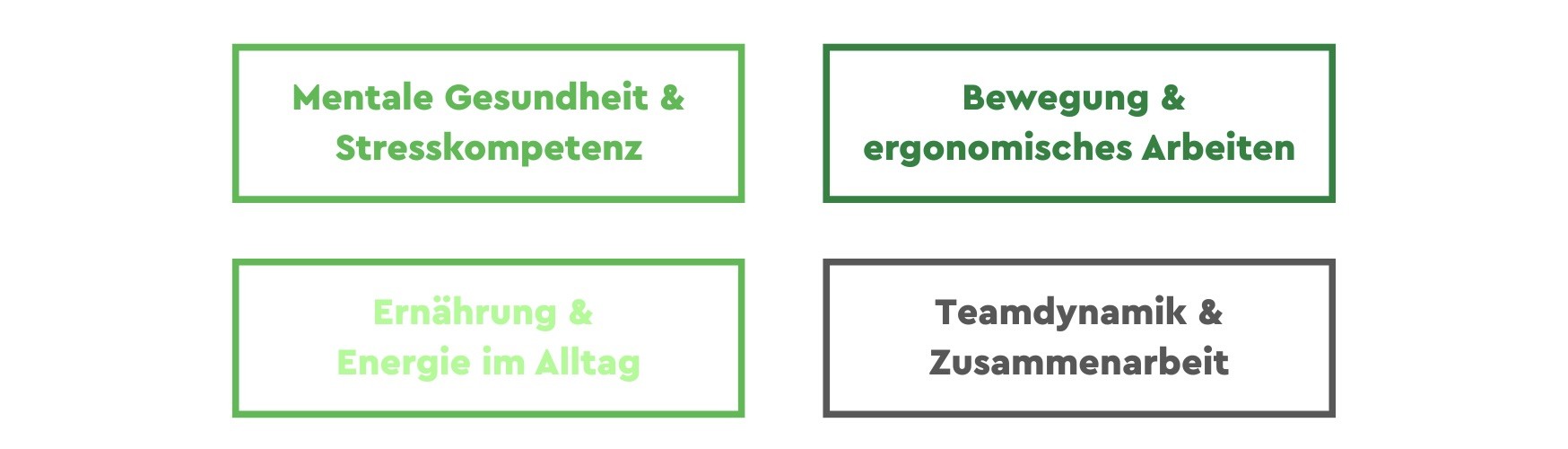 Wir bei Strong Partners decken mit Gesundheitstagen häufig mehrere dieser Bereiche ab: