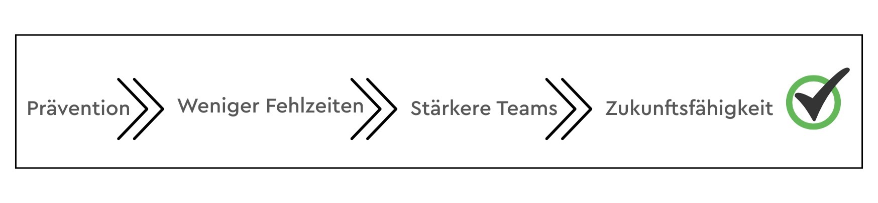 Prävention spart nicht nur Kosten. Sie schafft Arbeitsbedingungen, in denen Menschen gesund, leistungsfähig und motiviert bleiben können. Gesundheit entsteht nicht zufällig, sie ist das Ergebnis bewusster Entscheidungen, klarer Strukturen und nachhaltiger Angebote.